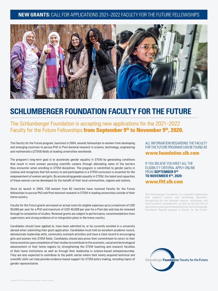 Opportunitiesforafricans Schlumberger Foundation Faculty For The Future Fellowships 2021 2022 For Women In Stem Application Deadline November 9th 2020 Https Bit Ly 2dk5ium The Faculty For The Future Program Launched In 2004 Awards Fellowships To